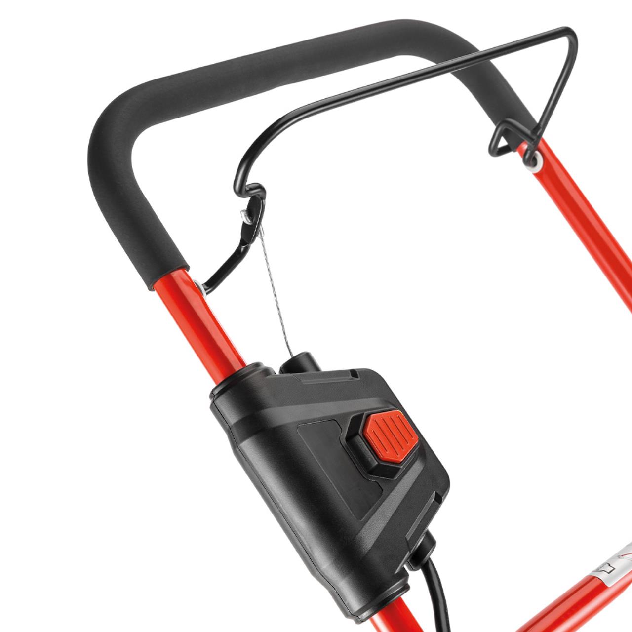 Der höhenverstellbare Holm sorgt für eine ergonomische Anpassung an die Körpergröße des Benutzers. Das erhöht den Bedienkomfort und unterstützt eine ermüdungsfreie Arbeitshaltung bei der Rasenpflege.