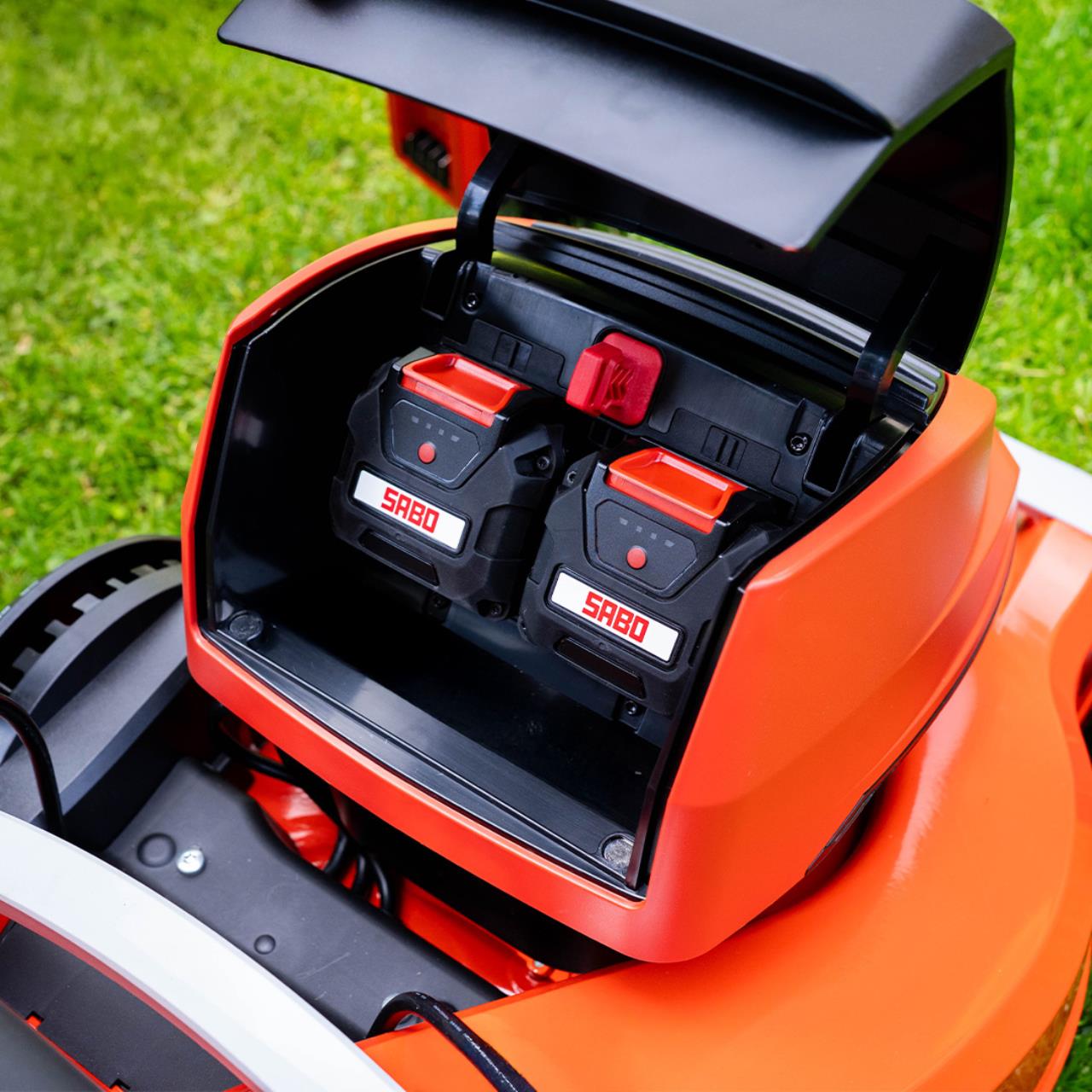 Erleben Sie den 47-ACCU VARIO mit variablem Hinterradantrieb, der Premium-Akku-Rasenmäher aus dem SABO Akku-System, ideal für mittlere bis große Gartenflächen bis 700 m².