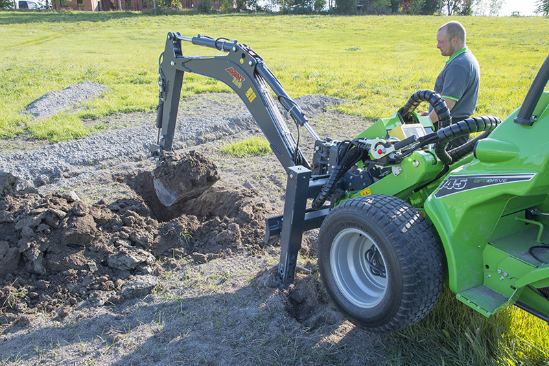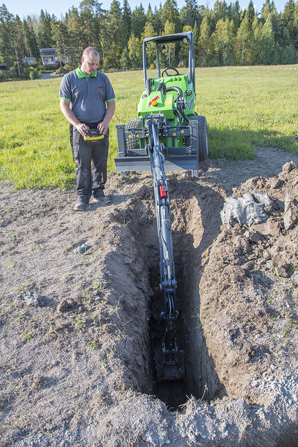 Der Avant Anbaubagger 260 mit Funkfernsteuerung vereint kraftvolle Leistung mit maximaler Kontrolle: Mit 2,60 m Grabtiefe, hydraulischem Ausleger‑ und Löffel‑System sowie präziser proportionaler Steuerung erreichen Sie auch schwer zugängliche Stellen—immer mit freiem Blick auf den Arbeitsbereich.