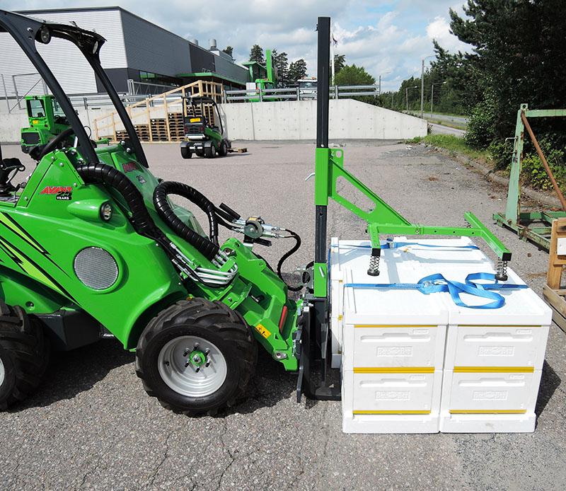 Transportieren Sie bis zu 12 Bienenstöcke gleichzeitig – schnell, sicher und effizient. Auch für Kartons, Paletten oder andere Lasten geeignet. Robuster hydraulischer Greifer sorgt für sicheren Halt, einfache Montage an alle Avant-Lader möglich. Vielseitig, zuverlässig und ideal für Imker und Hofbetrieb.