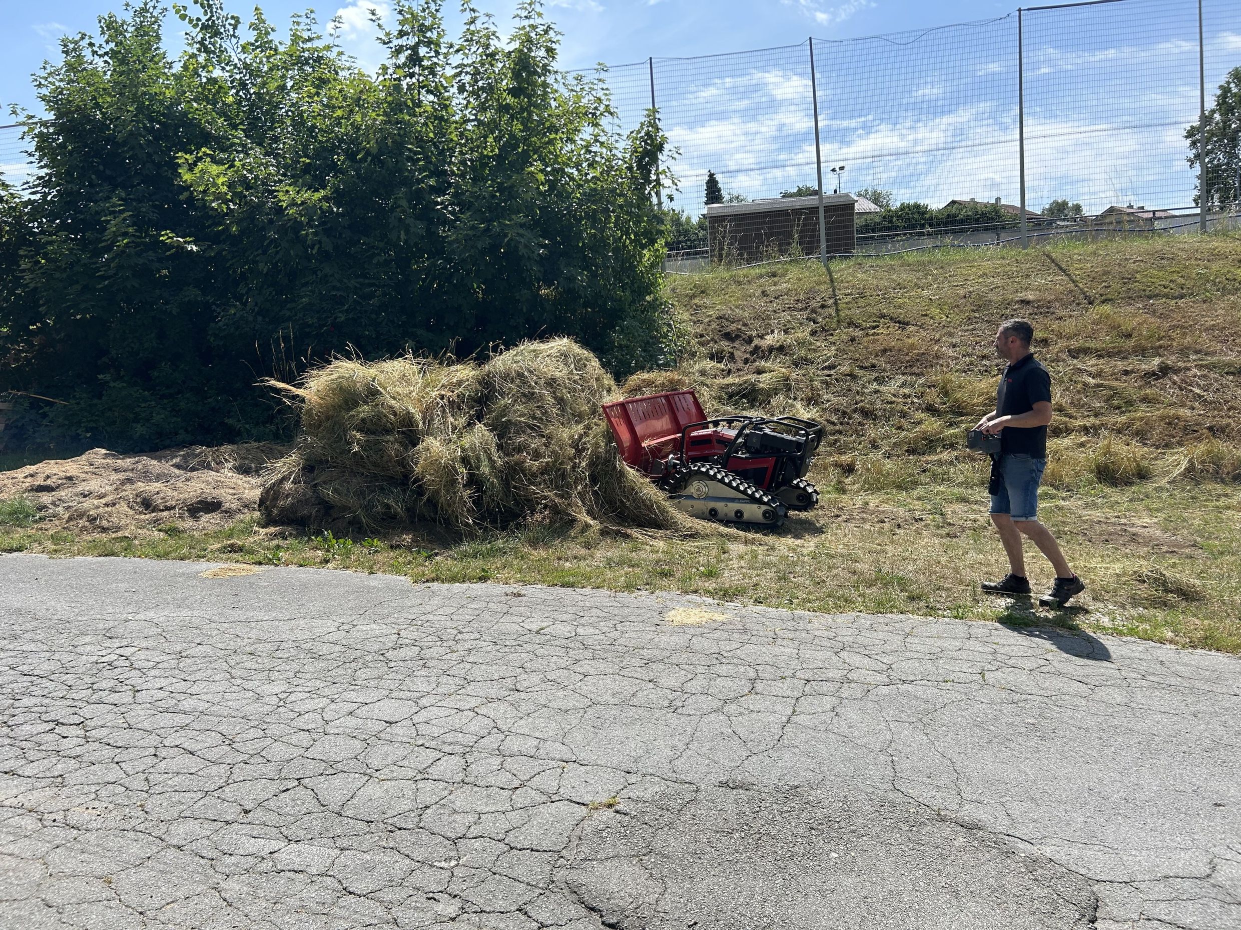 Heuschieber mit einstellbarer Neigung. Ideal in Hanglagen, an das Gelände anpassbar.