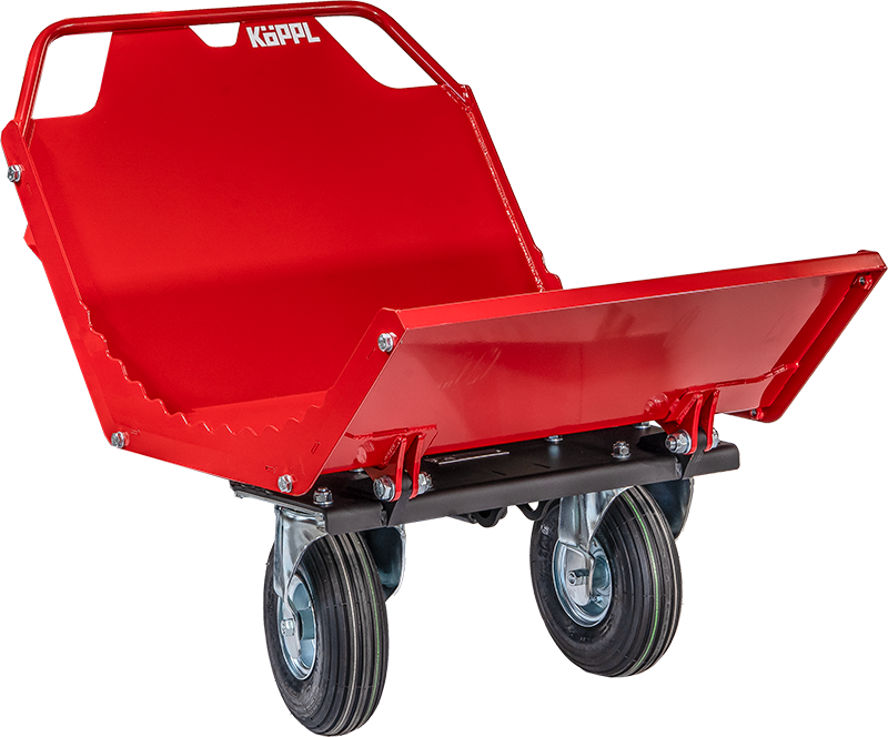 Modulare Kombimulde mit 160ℓ Fassungsvermögen. Einfach zu bedienende Kippvorrichtung. Kippsicherheit und Laufruhe durch zwei große Luftreifen. Auswechselbare Seitenwände für loses und festes Transportgut inklusive.