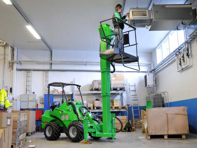 Die Leguan 50 Arbeitsbühne ist eine robuste, preiswerte und leicht zu bedienende Lösung für Wartung, Reparaturen, Malerarbeiten oder Lichtwechsel an Gebäuden — direkt montierbar auf Ihren AVANT-Lader über Schnellwechselsystem. Mit einer maximalen Arbeitshöhe von 5,0 m und einer Traglast von 200 kg (zwei Personen oder Person + Werkzeug) erfüllt sie alle nötigen Sicherheitsstandards und ist CE-zertifiziert. Durch die einfache Montage ist die Bühne rasch einsatzbereit – auch allein durch eine Person. Egal ob Terrasse, Hof, Werkstatt oder Baustelle: Die Leguan 50 ermöglicht sicheres und effizientes Arbeiten in der Höhe — flexibel, mobil und zuverlässig.
