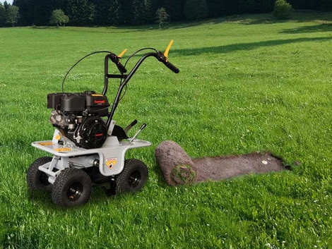 Die stufenlose Messertiefeneinstellung ermöglicht eine Schältiefe von bis zu 6 cm, sodass Rasensoden sauber und gleichmäßig abgetragen werden. Durch die ergonomisch optimierte Lenker- und Pedalposition lässt sich das Gerät besonders leicht führen und komfortabel bedienen.