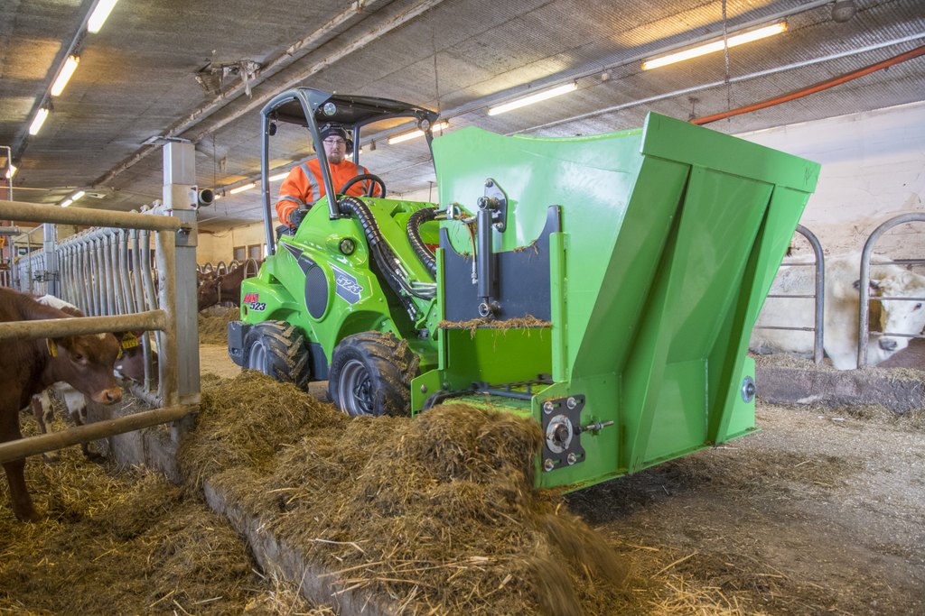 Der AVANT Silageverteiler verwandelt Ihren Hoflader in ein leistungsstarkes Amnbaugerät zur rationierten und gleichmäßigen Verteilung von Silage — praktisch beim Einfahren und Verteilen im Fahrsilo. Mit 650 l Volumen und 1100 mm Schaufelbreite reicht die Kapazität für große Futterportionen. Die kompakte Bauweise mit 1360 mm Gesamtbreite und einem Gewicht von 328 kg ermöglicht einfache Handhabung und hohe Wendigkeit. Robust gebaut und zuverlässig im Alltag — optimal für Landwirtschaft und Stallbetrieb.
