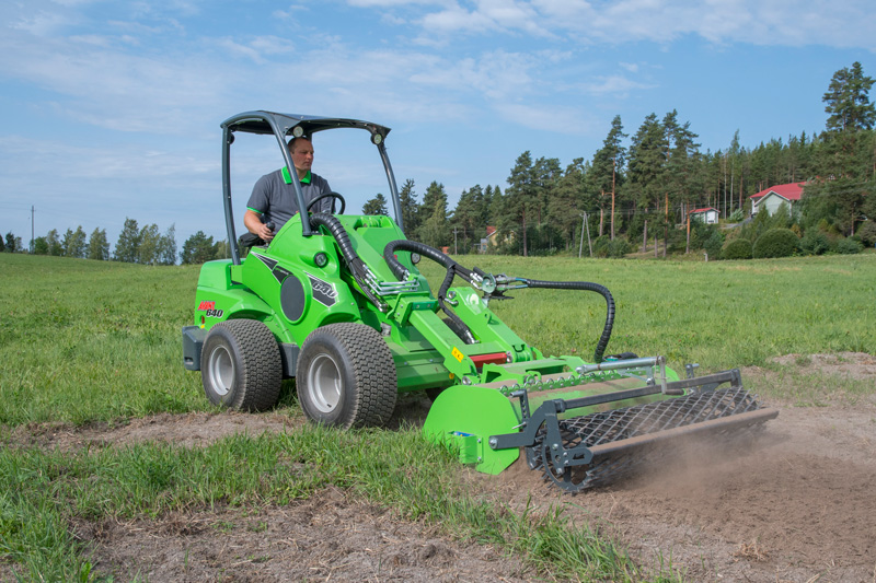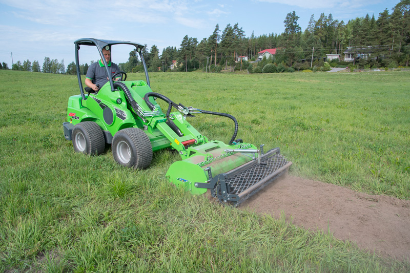 Die AVANT Umkehrfräse ist Ihre leistungsstarke Lösung für die gründliche Bodenbearbeitung – ob bei der Neuanlage von Rasenflächen, der Bearbeitung von Altrasen oder steinigen Böden. Dank hydraulischem Direktantrieb fräst sie Erde tief durch, vergräbt Steine und Schutt sicher im Boden und liefert eine gleichmäßig feinkrümelige, glatt gewalzte Oberfläche. Die stufenlos einstellbare Arbeitstiefe bis ca. 150 mm, ein vertikaler Sortierrechen sowie eine hintere Feldwalze (Gitterwalze) sorgen für beste Saatbett‑Qualität – optional sogar mit Säeinrichtung, um im gleichen Arbeitsschritt den Boden neu zu besäen. So sparen Sie Zeit und Aufwand: Erde lockern, begradigen, Steine vergraben und Saatbett vorbereiten — alles mit nur einer Maschine. Perfekt für Garten‑, Landschafts‑ und Kommunalpflege, wenn es auf Effizienz und professionelle Bodenqualität ankommt.