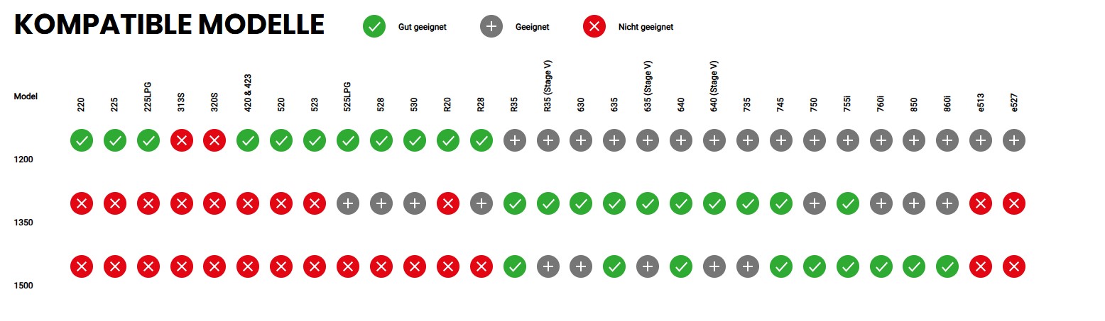 | Arbeitsbreite | 1200 mm | 1350 mm | 1500 mm |