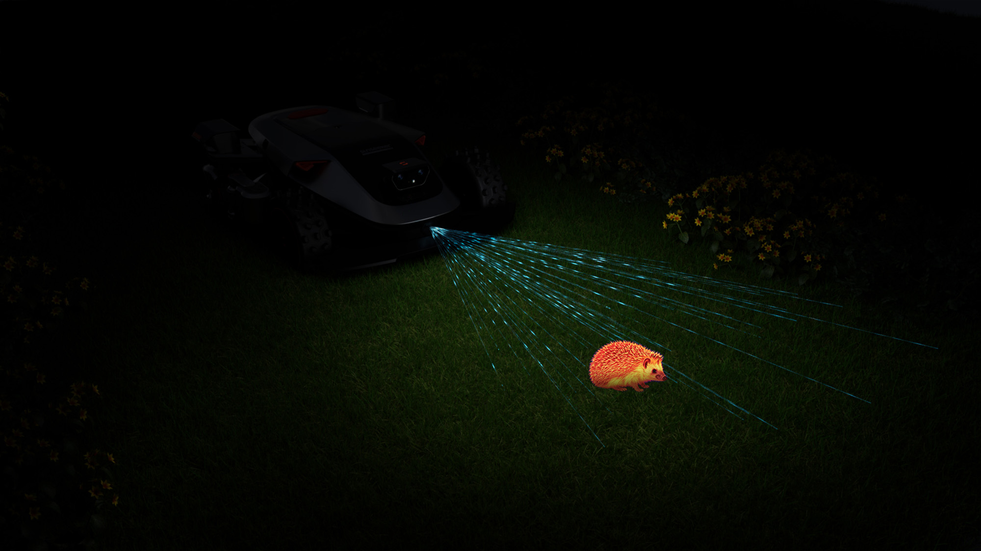 Das Sunseeker Elite Vision AI-System nutzt drahtlose Kartierung und 3D-Binokularkameras, um präzise Mähpfade ohne Kabel zu erstellen.