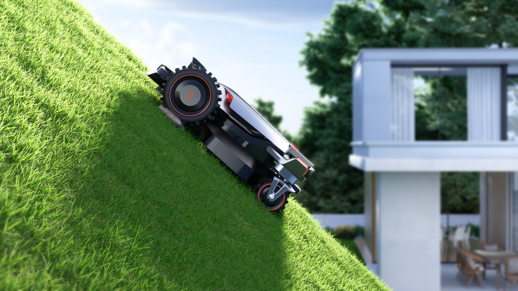 Sunseeker X9 Plus Mähroboter bewältigt Steigungen bis zu 90 %