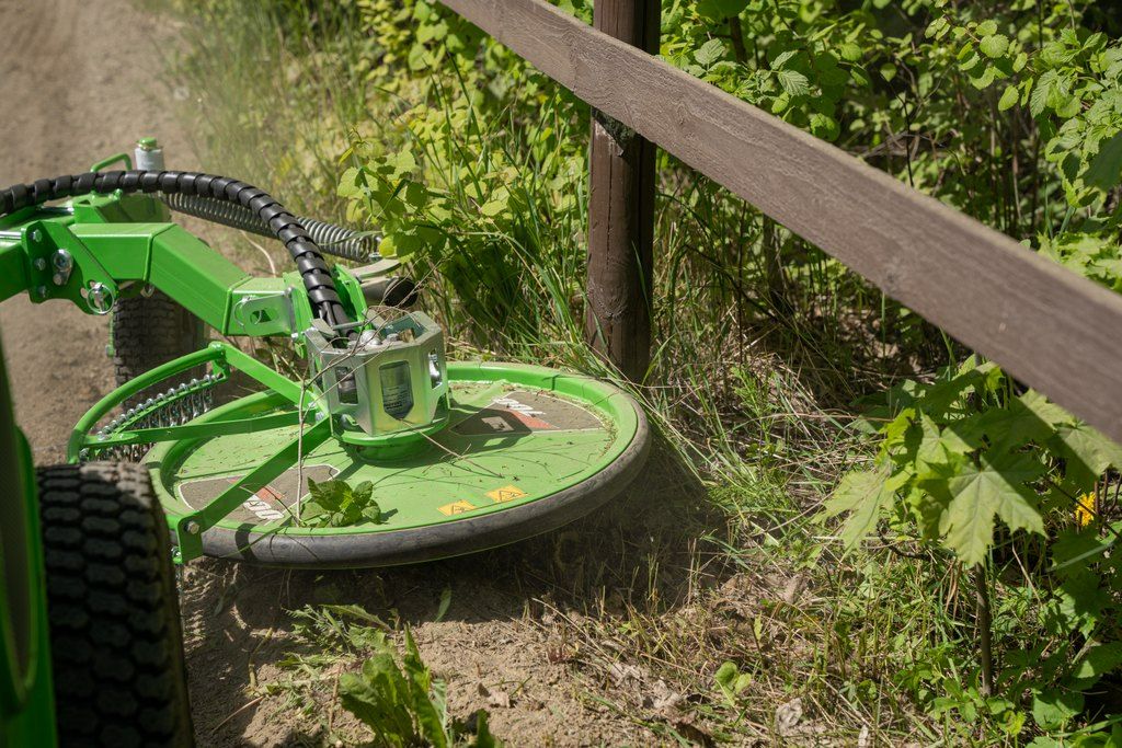 Der Avant Zaunmäher ist die perfekte Lösung, wenn Sie Gras, Wildkraut oder Unkraut selbst an schwer zugänglichen Stellen – unter Zäunen, Leitplanken, um Bäume oder entlang von Bordsteinen – zuverlässig entfernen wollen. Der Mähkopf mit zwei Klingen ist federbelastet und schwenkt automatisch zurück, wenn er auf Hindernisse trifft. So mähen Sie sauber und sicher, ohne Hindernisse zu beschädigen. Mit einer Schnittbreite von 704 mm, einer Mindestschnitthöhe von 60 mm und einer Arbeitsbreite von bis zu 1.870 mm (bei ausgeschwenktem Kopf) deckt der Zaunmäher auch breite Flächen ab. Dank verstellbarem Stützrad und Seitenarm können Sie flexibel nach rechts oder links arbeiten — optimal für Garten‑, Grünanlagen‑ oder Straßenrandpflege.